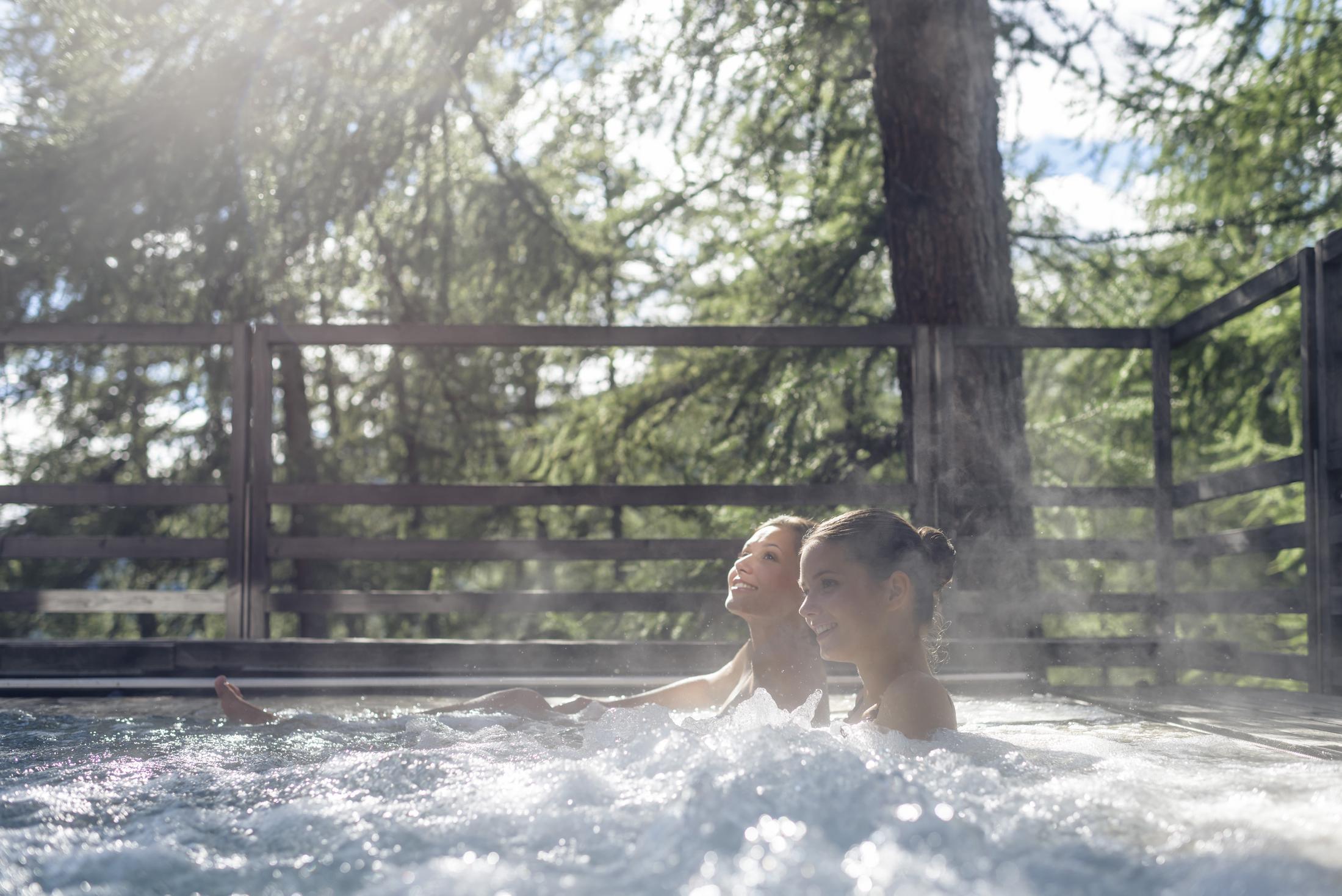 Sprudelndes Wasser, das sanft den Körper massiert. Beim Relaxen in unserem Whirlpool tankst du Energie für deine nächsten Erlebnisse.