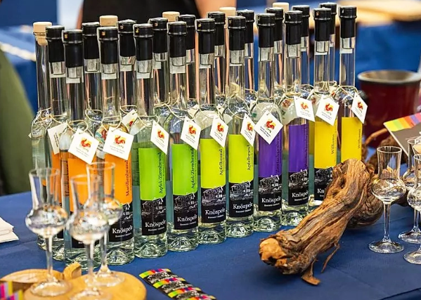 Wir bieten Glühwein, Apfelglüh-Gin, Säfte, Bauernchips, Brettlmarende, Gulaschsuppe, süße Krapfen und vieles mehr an; außerdem verkaufen wir Weine, Liköre, Gin und Säfte, und am Wochenende verwöhnt euch unsere Showküche mit frisch zubereitetem Käseraclette mit Speck.
